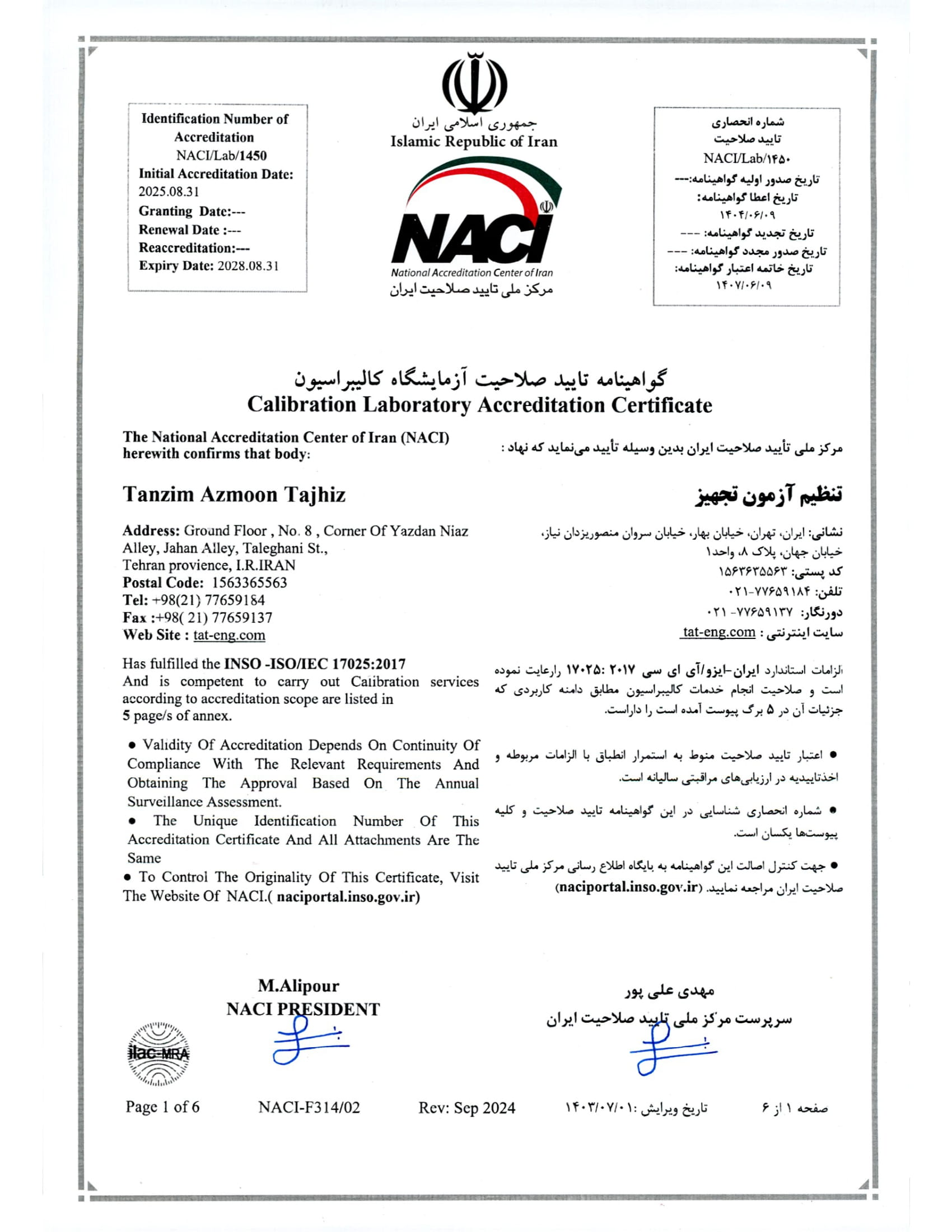 جهت مشاهده گواهینامه های مهندسی تنظیم ، آزمون ، تجهیز ( تات ) به سایت ،آدرس www.tat-eng.comمراجعه فرمائید .شماره تماس : 02177659137 دانلود گواهینامه ها